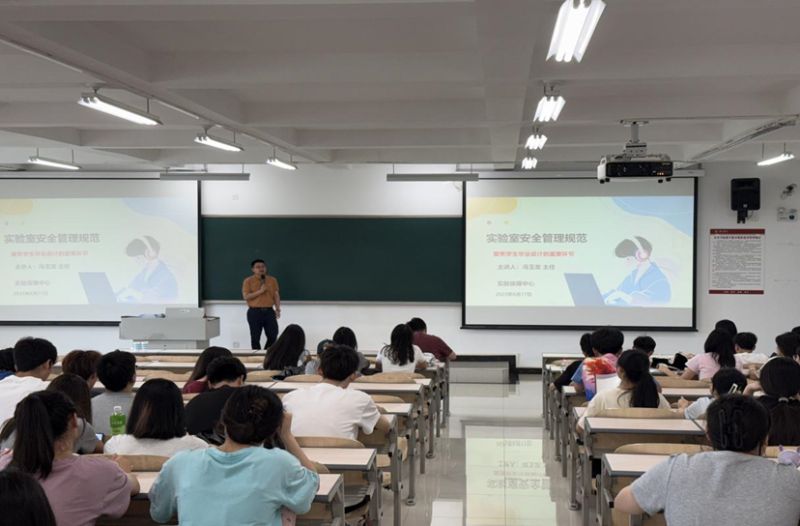 本次培训内容围绕进入实验室前、实验中、实验结束后的安全注意事项三个阶段展开。在进入实验室前,着重讲解了要提前熟悉法规制度、学习实验操作规程和实验室环境等;实验过程中,着重讲解了个人防护装备的正确穿戴、仪器设备的规范使用和毕设学生实验过程中容易发生的安全隐患等;实验后着重讲解了要保持实验室整洁有序,及时清理实验废弃物,防止发生交叉污染和安全隐患等。