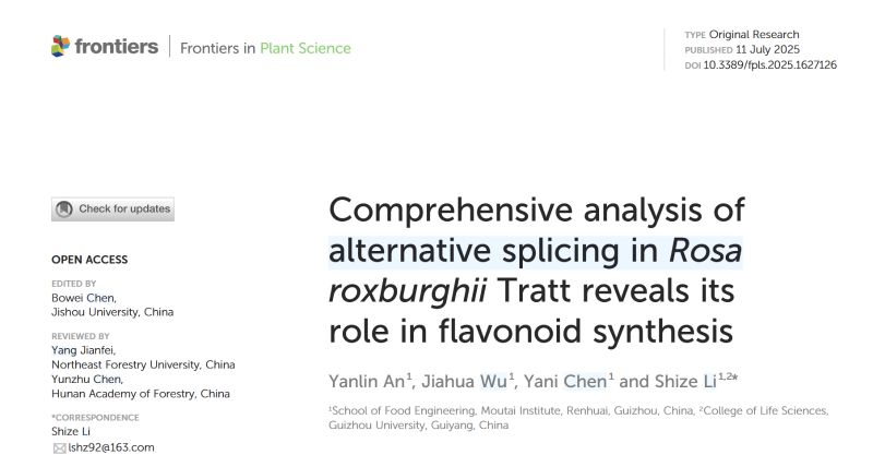 An, Y., Wu, J., Chen, Y., & Li, S. (2025). Comprehensive analysis of alternative splicing in rosa roxburghii tratt reveals its role in flavonoid synthesis. Frontiers in Plant Science, 16, 1627126. https://doi.org/10.3389/fpls.2025.1627126