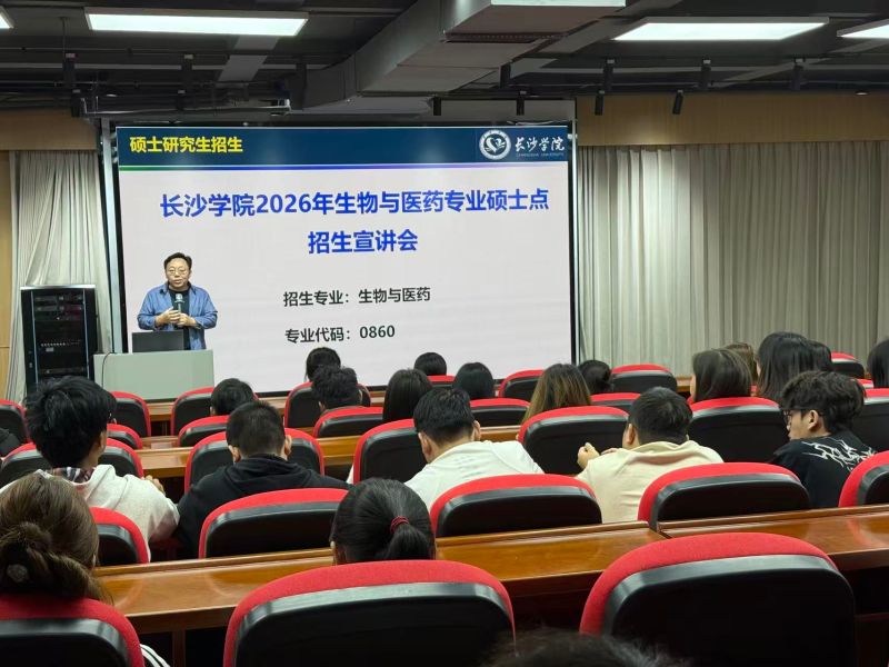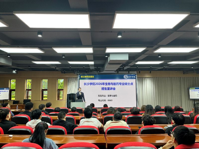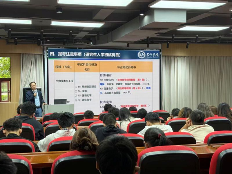 研究生招生宣讲会上,长沙学院生物与化学工程学院院长褚武英教授系统介绍了长沙学院基本情况、地理位置、校园环境、宿舍条件、学科特色及成果,副院长深度解读了长沙学院研究生招生政策、奖助体系等优势特色内容。宣讲内容详实、针对性强,引起了在场学生的浓厚兴趣,部分学生现场扫码添加教师联系方式,表达了报考意愿。