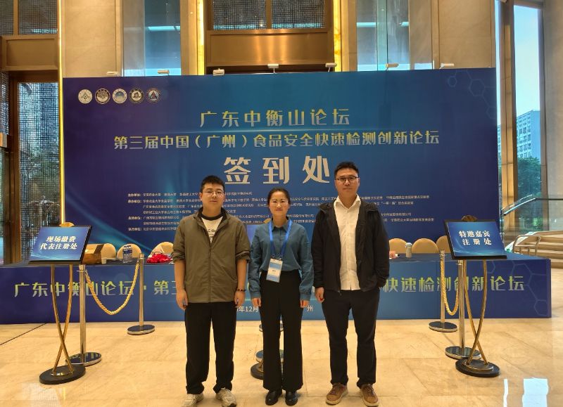 由华南农业大学、南昌大学、华南理工大学、暨南大学和广东省科学院微生物研究所等单位主办的第三届中国(广州)食品安全快速检测创新论坛于2025年12月19-21日在广州召开。taptap点点体育食品工程学院宋亚博士、杨文平博士、赵驰博士应邀前往交流。杨文平博士作了题为《基于氧空位纳米酶的亚硝酸盐智能手机传感》的专题报告。