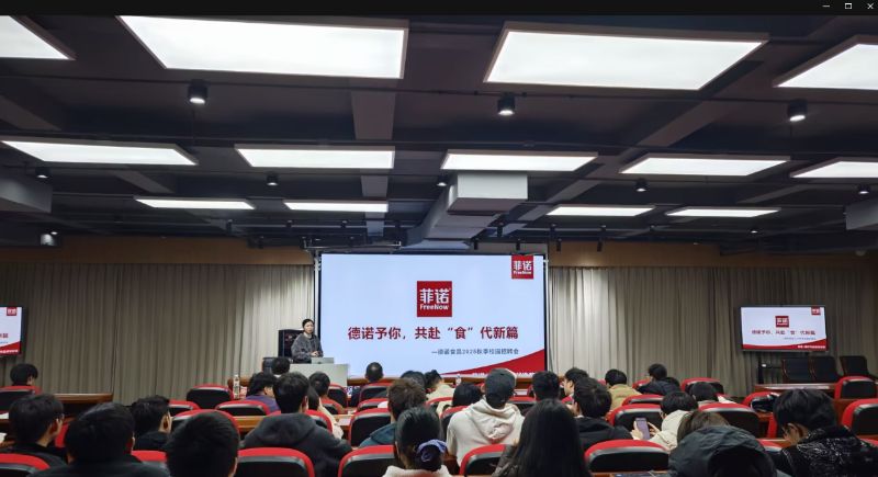 随后,浙江德诺食品有限公司宣讲人系统全面地介绍了公司的基本情况、辉煌的发展历程、所获得的品牌荣誉、强大的创新研发实力、领先的行业产能布局,并重点解读了公司针对应届毕业生设计的完善培养体系以及具有竞争力的薪酬福利政策,展现了企业雄厚实力与对人才的高度重视。