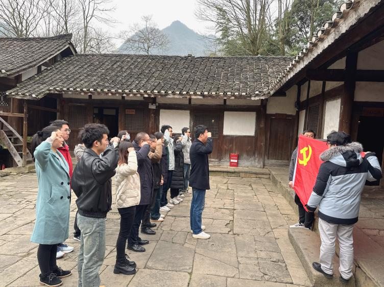 在苟坝会议会址前,面对党旗,大家一起重温入党誓词。铿锵有力的宣誓声响彻现场,让现场所有人再次回顾了激动人心的入党时刻,提醒自己勿忘曾经面对党旗许下的铮铮誓言,不断加强自身的政治素质和革命精神。