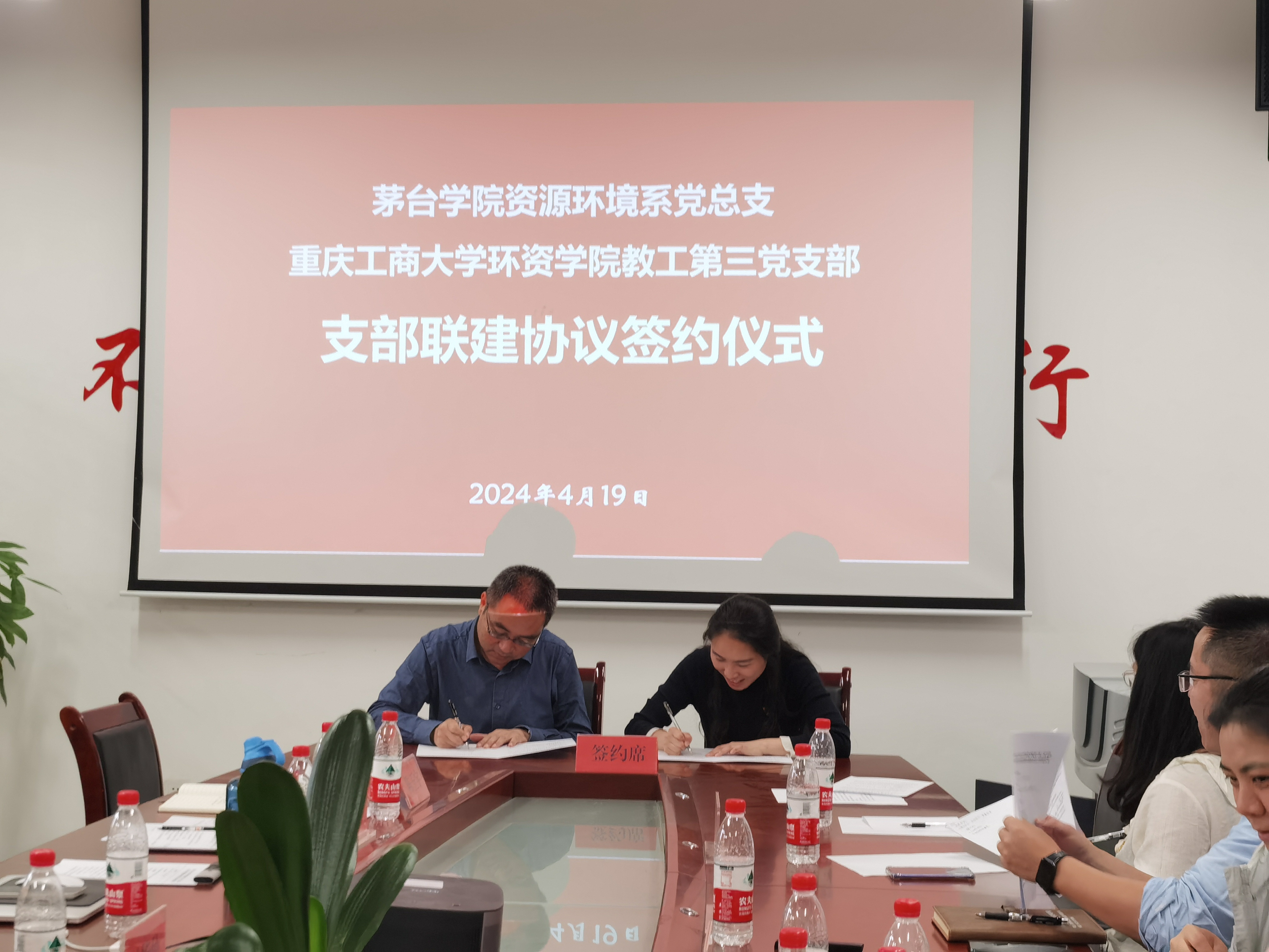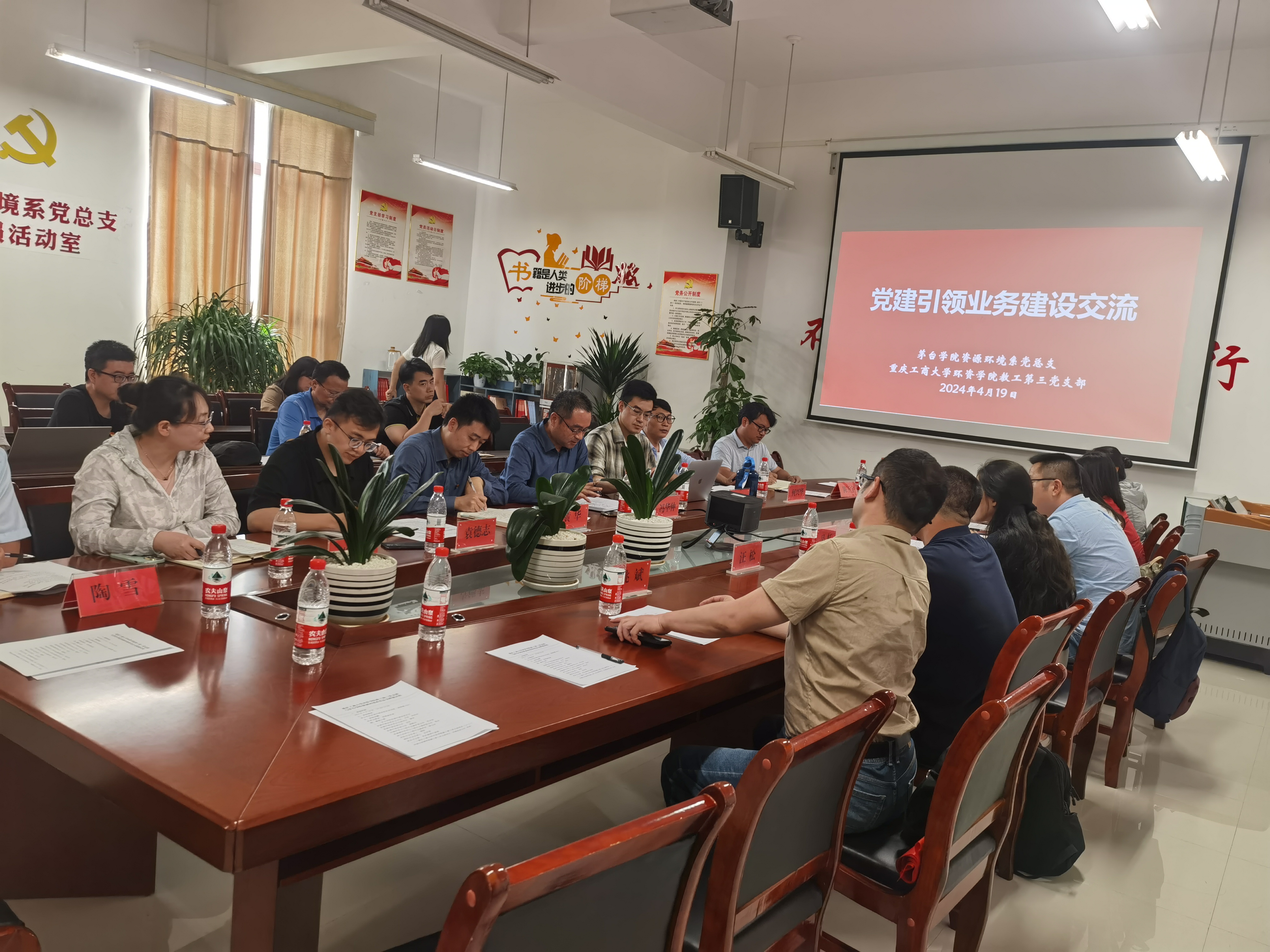 为推动党建与业务深度融合,4月19日,资源环境系党总支联合重庆工商大学环资学院教工第三党支部开展“学两会精神,话联建发展”主题活动。重庆工商大学环资学院教工三支部书记、环境系主任吴虹,材料系主任汪松等一行到访。资环系党总支书记、主任冯华仲,副书记黄华,副主任吉庆、袁德志,各教研室主任、专业负责人参加活动。