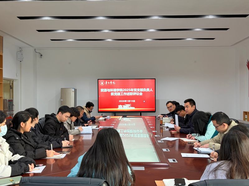 为深入学习贯彻习近平新时代中国特色社会主义思想,全面落实新时代党的建设总要求,2026年1月15日,资源与环境学院党总支在A2-408会议室召开2025年度党支部负责人抓党建工作述职评议会。学院党总支书记黄训星主持会议并讲话,学院党总支及下设党支部委员、师生党员代表参加会议。