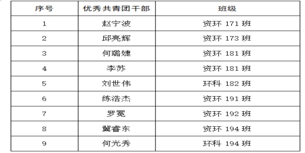 根据《关于评选2019—2020年度taptap点点体育“优秀共青团员”、“优秀共青团干部”及“五四红旗团支部”的通知》文件有关精神,本着公开、公平、公正的原则,经基层团支部推荐、系团总支评议、校团委审核。经研究,学院决定表彰我系共有29名同学被评为优秀共青团员、9名同学为优秀共青团干部、资源循环科学与工程173班、环境科学与工程181班、环境科学与工程183班团支部评为五四红旗团支部。