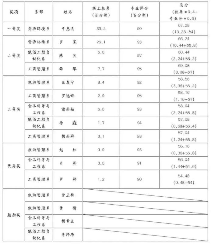 本次微团课校赛共收到来自5个院系报送的参赛作品,其中旅游管理系4个、食品科学与工程系3个、酿酒工程自动化系3个、资源环境系2个、工商管理系4个。