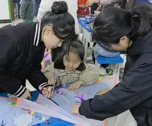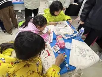 在绘画环节,由大学生志愿者引导孩子们发挥想象,为环保手提袋上色,在风筝上绘画蓝天、白云、绿树等环保元素,并写上环保标语,让孩子们在绘画过程中深入理解环保理念。