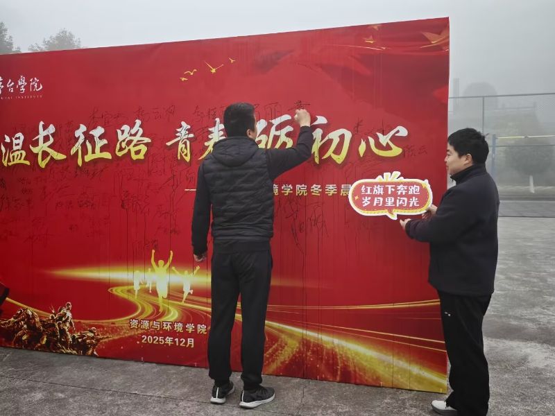 为赓续红色血脉、弘扬长征精神,让永不褪色的信仰之旗高高飘扬在新时代青年的心中,让“每一代人都要走好自己的长征路”的号召化作脚下最铿锵的步伐,2025年12月18日清晨,资源与环境学院举办“重温长征路·青春砺初心”冬季晨跑活动,让师生以奔跑的姿态致敬先辈,用汗水浇灌信仰。学校党委学生工作部副部长刘秋,学院领导黄训星、王贤晨、刘晓晓、栾康,全体辅导员、班主任及2024级、2025级学生参加。