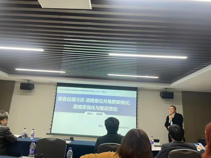 资源与环境学院刘晓明博士应邀参加“污泥好氧生物转化前沿技术”专题,并作《酱香白酒污泥与酒糟原位共堆肥新模式:腐殖质强化与驱动效应》专题报告。会上,刘晓明博士分享了酱香白酒污泥处置现状及现有主要处置模式,酱香白酒污泥好氧发酵可行性与经济性。同时,探讨了酱香白酒酒糟作为腐殖质促进剂的可能性,并为构建酱香白酒污泥-酒糟原位共堆肥模式提供了新路径。