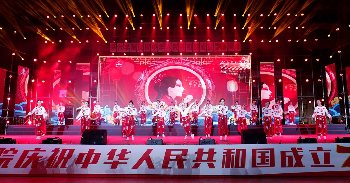“回首70年艰辛探索、重温70年光辉岁月、历数70年辉煌成就,新中国从“站起来”到“富起来”,再到“强起来”,以令人惊叹的速度从雨后初生,到如今的枝繁叶茂。中国速度的背后,是一代又一代的中华儿女“不忘初心、牢记使命”、无私奉献、勇敢创新、弃小家成大家的精神创造的。作为新时代的青年,我们更应不辱使命,树立为民族强盛而努力奋斗的伟大理想,自强不息,做一个有理想、有能力、有担当的社会主义事业接班人……”随着封孝伦致辞结束,炫目的舞台照明伴随着强烈电音节奏拉开了演出帷幕。