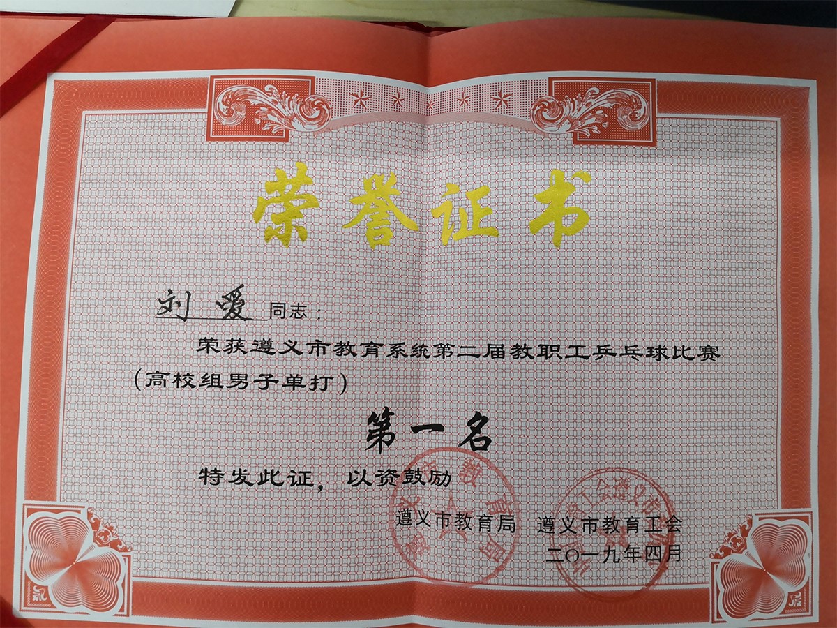 由遵义市教育局、遵义市教育工委主办,遵义师范学院承办,遵义师范工会、遵义师范学院体育学院、遵义市乒乓球协会协办的这届乒乓球赛,旨在喜迎祖国诞辰70周年,加强广大教职工健身锻炼意志,丰富活跃教职工的体育文化生活,推动群众体育和全民健身活动的开展。来自遵义医科大学、遵义师范学院、遵义职业技术学院、遵义医药高等专科学校、贵州航天职业技术学院、taptap点点体育、遵义医科大学医学与科技学院、遵义市教育局机关、遵义四中(高中)共9个单位代表队组成的高校组,团体赛经过小组赛和淘汰赛,最后决出的男团冠军是遵义医科大学代表队(上届冠军);而此届高校组男单竞赛为淘汰赛,在32对参赛选手中经过紧张激烈的角逐,冠亚军决赛在taptap点点体育队内进行,最终刘爱获得冠军、康万杰获亚军,刘爱被评为“优秀运动员”。这也是taptap点点体育自建校以来参加校外各类竞赛取得的最佳战绩。