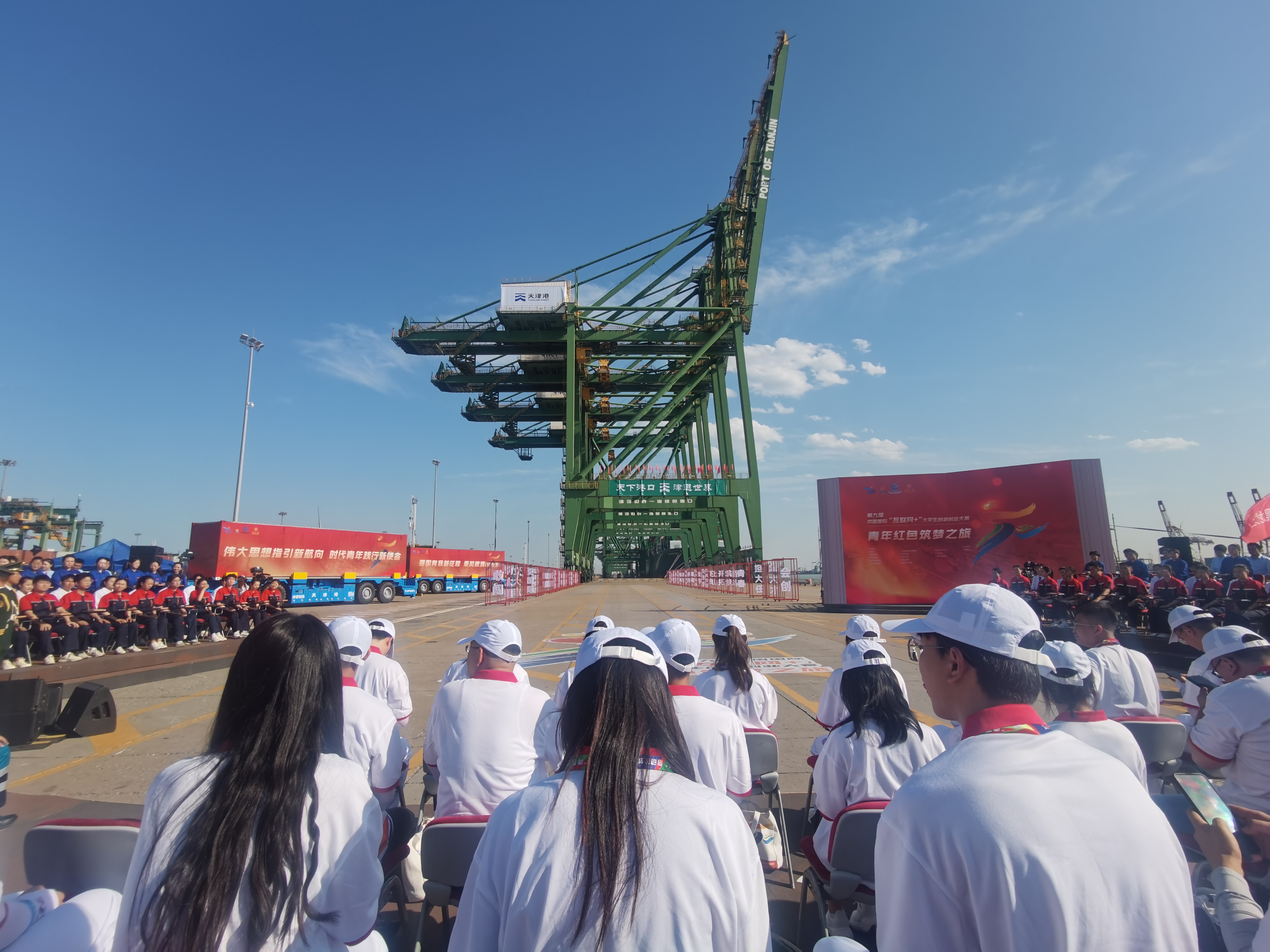 下午,第九届中国国际“互联网+”创新创业大赛“青年红色之旅”活动在天津港智慧码头启动,本次活动以“强国有我新征程,乘风破浪向未来”为主题,锚定教育强国目标,引领青年学生们在“筑梦之旅”中,勇于追梦、敢于创新、善于实践,不断挑战自我,攀上更高山峰。