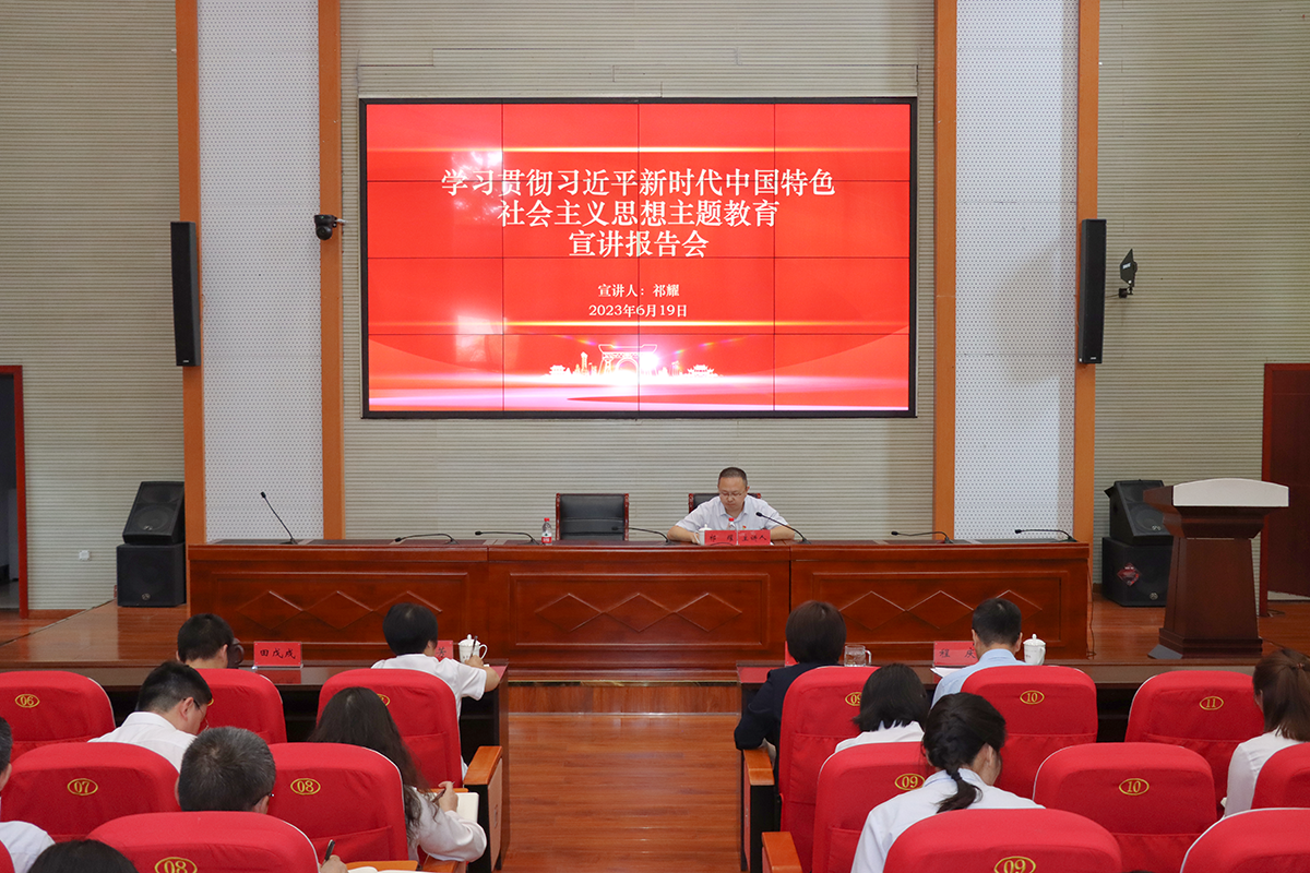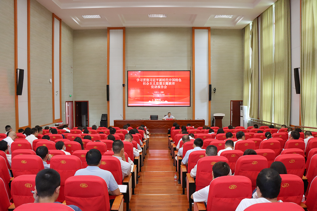 为深入学习习近平新时代中国特色社会主义思想,贯彻落实党的二十大精神,教育引导广大教职员工全面准确把握主题教育“学思想、强党性、重实践、建新功”总要求,坚持“学思用贯通、知信行统一”主题教育根本任务,6月19日,学校在行政楼报告厅开展学习贯彻习近平新时代中国特色社会主义思想主题教育宣讲报告会。