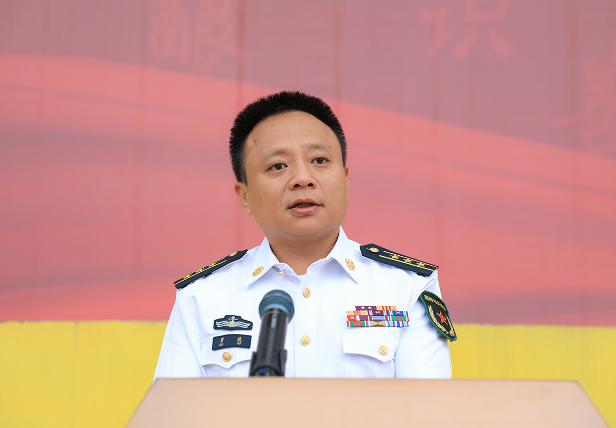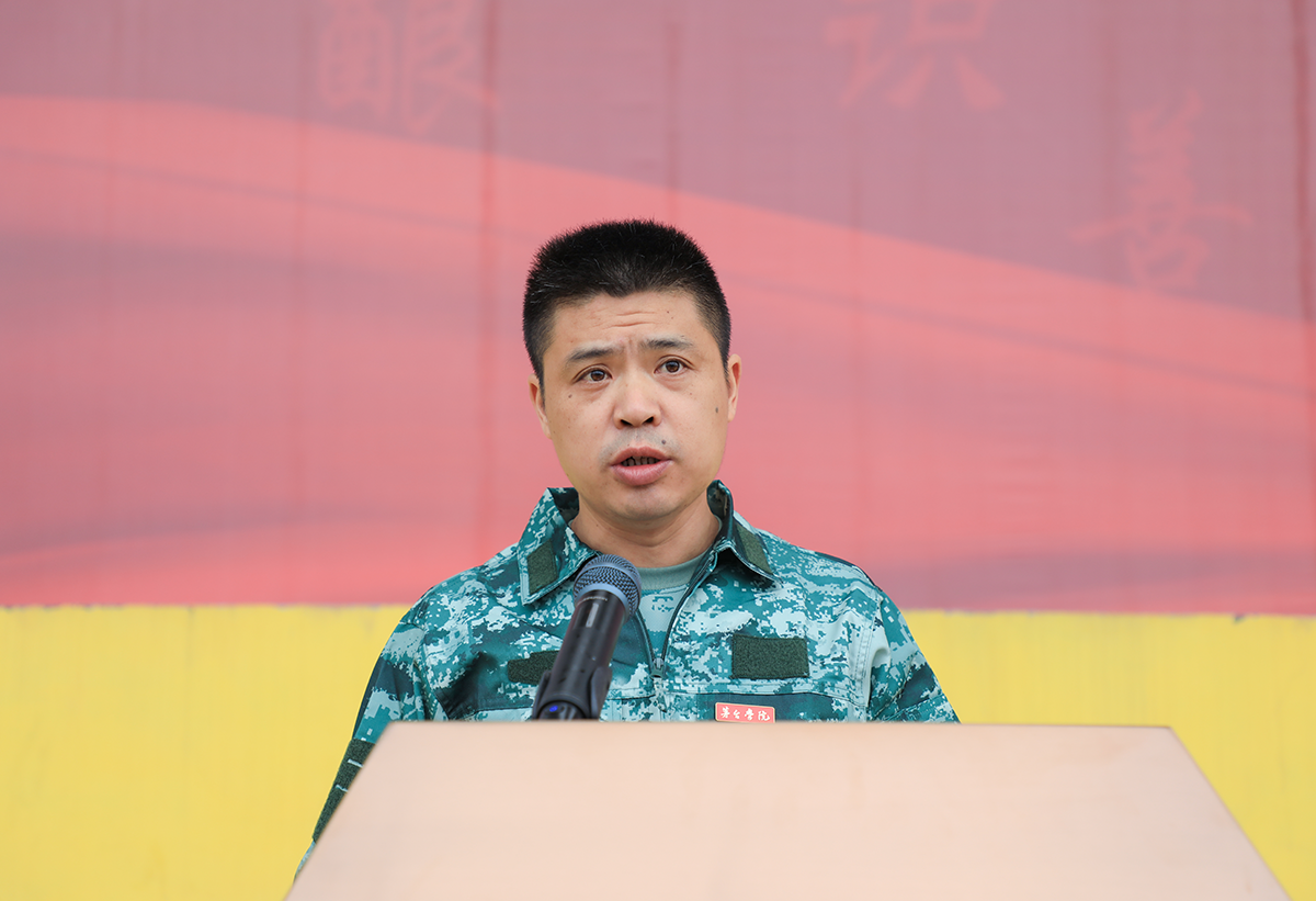 他要求,全体参训新生要提高站位、端正态度,敢于吃苦、勇于锻炼,服从命令、听从指挥,安全、顺利、圆满地完成此次军训任务,进一步推动国防教育走深走实,凝心聚力不断汇聚起强国强军的强大意志和力量。