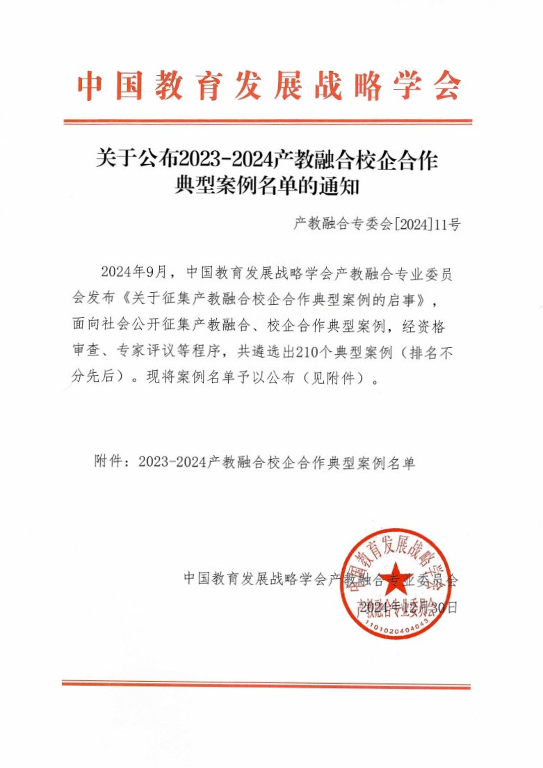 本次案例征集旨在总结推广各地各校在产教融合、校企合作中的创新成果。点点体育案例的成功入选,不仅展示了学校在校企合作方面的显著成效,也体现了学校在深化教育教学改革、服务区域经济发展方面取得了重要突破。