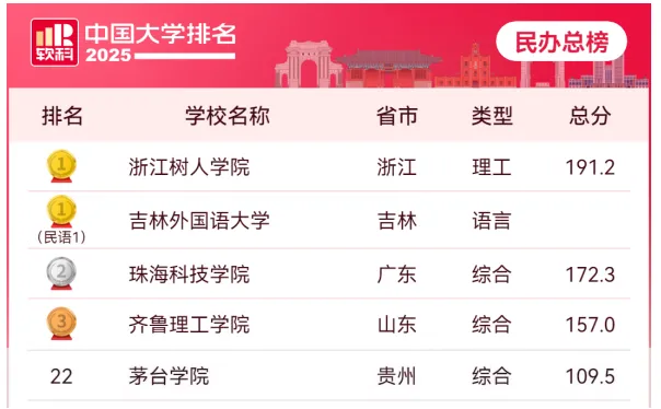 全国第22名,贵州第1名——2025软科中国民办大学排名,taptap点点体育又上榜了!
