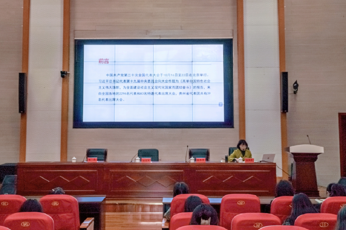宣讲会从党的二十大的重大意义和重大主题,过去五年工作和新时代十年伟大变革的重大意义,习近平新时代中国特色社会主义思想的世界观和方法论,以中国式现代化推进中华民族伟大复兴的使命任务,新时代新征程的使命任务,奋力谱写多彩贵州现代化建设新篇章,以伟大自我革命引领伟大社会革命的重要要求,团结奋斗的时代要求等方面内容宣讲了党的二十大精神,勉励师生以学习与宣讲党的二十大精神为契机,不断从党的重大成就和历史经验中汲取前行的智慧和力量,切实以党的二十大精神武装头脑、指导实践、推动工作。