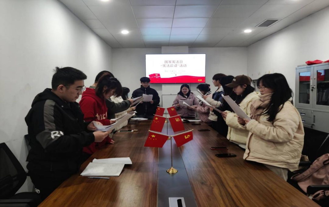 参与晨读活动的同学们齐声认真朗读宪法部分章节内容,句句铿锵有力,声声入耳、字字入心,在庄严肃穆的氛围中共同学习宪法知识、领会宪法精神、感受宪法权威。