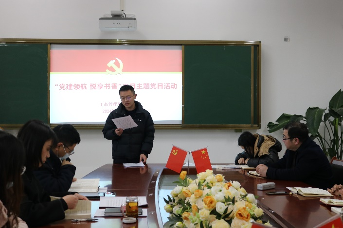 为深入学习贯彻党的二十大精神和习近平总书记“多提倡读书,建书香社会”等重要指示精神,激发广大党员读书热情,营造“多读书、读好书、善读书”的良好氛围,建设学习型总支部。2月27日,工商管理系党总支在留芳楼四楼会议室开展“党建领航 悦享书香”主题党日活动,全体教职工党员和学生党员代表参加。