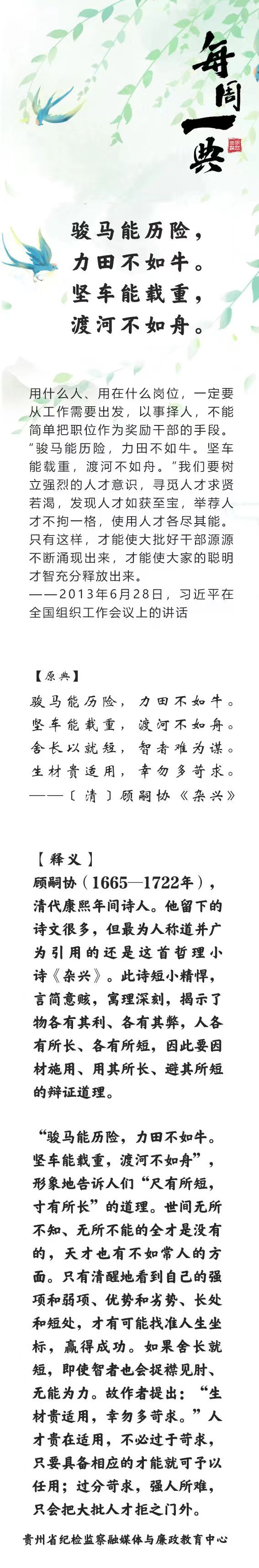 每周一典 | 骏马能历险,力田不如牛……