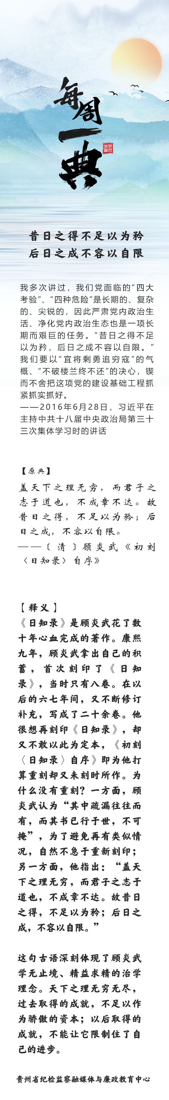 每周一典 | 昔日之得不足以为矜 后日之成不容以自限