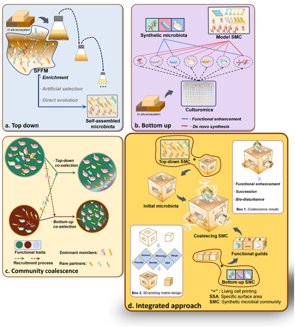 文章指出,“自上而下”“自下而上”与“群落融合”的三种微生物组工程策略,可作为现代微生物组工程在传统发酵领域,特别是中国白酒产业中优先应用,充分利用各个策略的优势,着力整合和构建白酒固态发酵微生物群模型。