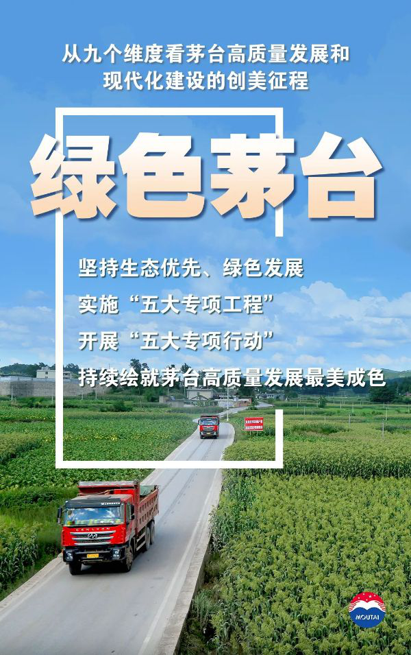 未来,茅台将着力推进“增水、提气、固土、护微、生态系统平衡”五大专项工程,持续开展“节能降碳增效、绿色产品设计、产业链绿色转型、绿色科技创新、绿色低碳生活”五大专项行动,努力构建“山水林土河微”生命共同体,不断厚植发展绿色基底,让茅台的天更蓝、水更清、生态环境更美好。