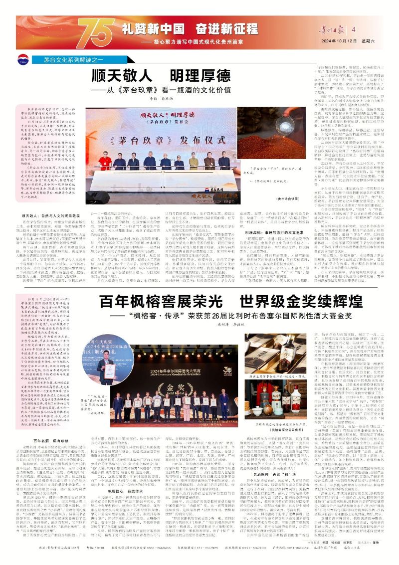 《茅台玖章》的发布,不仅是对茅台多年文化积淀的一次系统梳理,更是对茅台未来发展方向的一次深刻昭示,其中,茅台“顺天敬人,明理厚德”的核心价值观,更如同一根坚韧的纽带,将茅台的过去、现在与未来紧紧相连,也为外界解读茅台、理解茅台提供了一把钥匙。