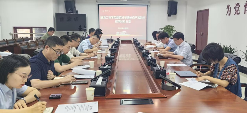 会上,酿酒工程学院副院长吴德光作产教融合教学经验分享,各二级学院汇报了教学工作落实情况,教务部、实验保障中心和高教研究与评估中心进行了近期相关工作通报及部署,各二级学院进行情况反馈及交流。