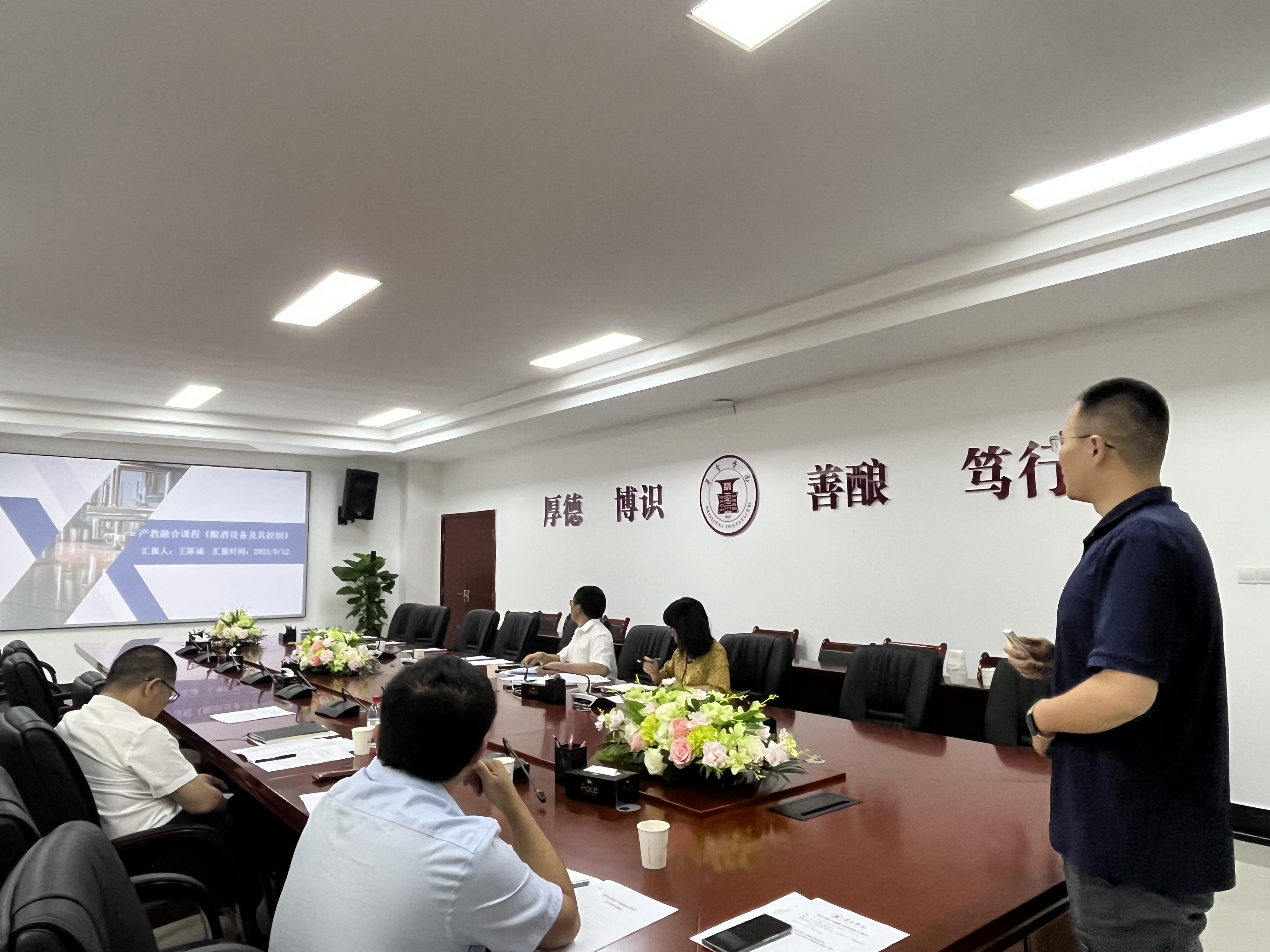 酿酒工程系、食品科学与工程系、自动化系、工商管理系、旅游管理系等依次分享交流了产教融合课程案例经验做法,同时,与会人员针对产教融合课程开设进行研讨和问题反馈。