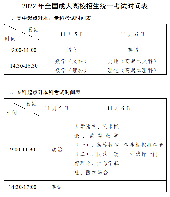 (一)2022年成人高校招生工作全部实行计算机网上录取。录取工作于12月上旬开始,12月底前结束。