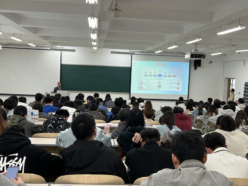 在互动交流环节,同学们踊跃提问,宣讲老师针对大家关心的就业选择、政策细节等问题,逐一给予专业细致解答。整场宣讲会内容详实丰富,现场氛围热烈活跃,赢得了同学们的一致好评。